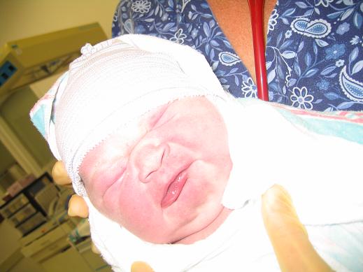 Most of our family and those friends who have known us for a while know how similar Jordan and Brenna looked like each other at birth. In fact, they looked like identical twins - big, bald, and beautiful. When Katherine was born, we were quite surprised to see her with hair...and dark hair at that. Her facial features also seemed to be different enough to be noticeable.