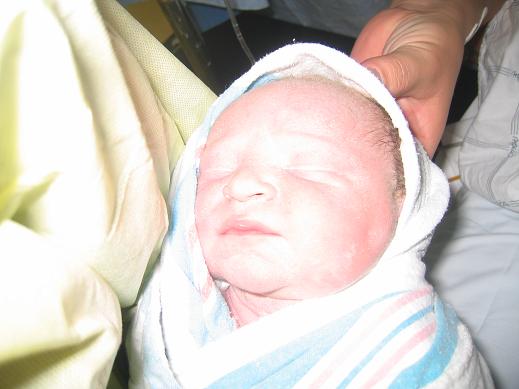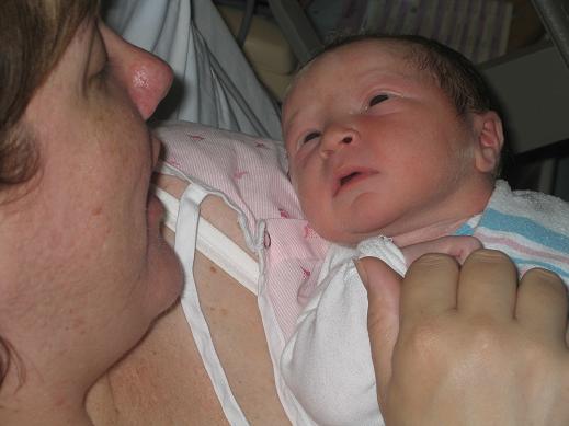 Most of our family and those friends who have known us for a while know how similar Jordan and Brenna looked like each other at birth. In fact, they looked like identical twins - big, bald, and beautiful. When Katherine was born, we were quite surprised to see her with hair...and dark hair at that. Her facial features also seemed to be different enough to be noticeable.